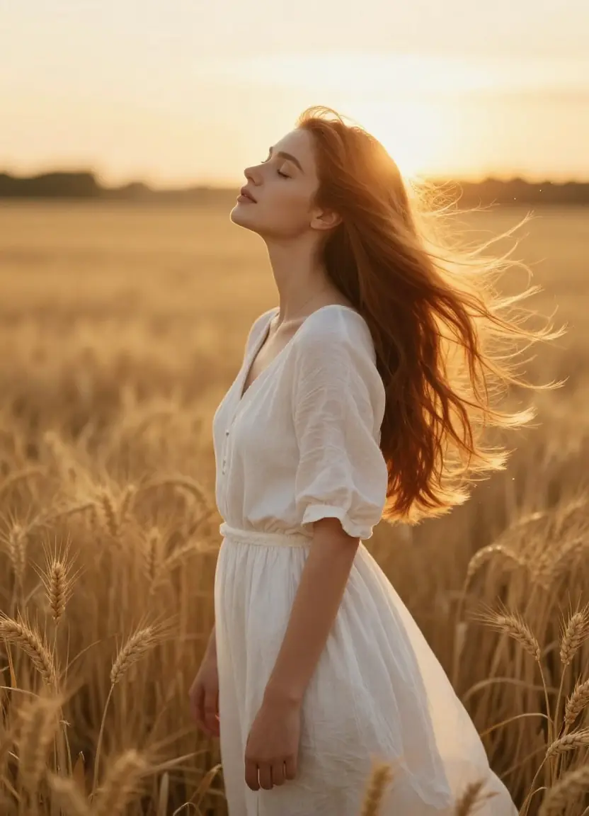 - Cinematic Portrait β sun-kissed woman in wheat field